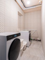 Выполнен качественный ремонт : пол- ламинат и плитка; на стенах декоративная штукатурка и мебельные щиты, натяжные потолки. Большая комната с кухней , кухонный гарнитур с встроенной техникой изготовлен под заказ. Сделан отдельный вход с большим коридором в 20 кв.м