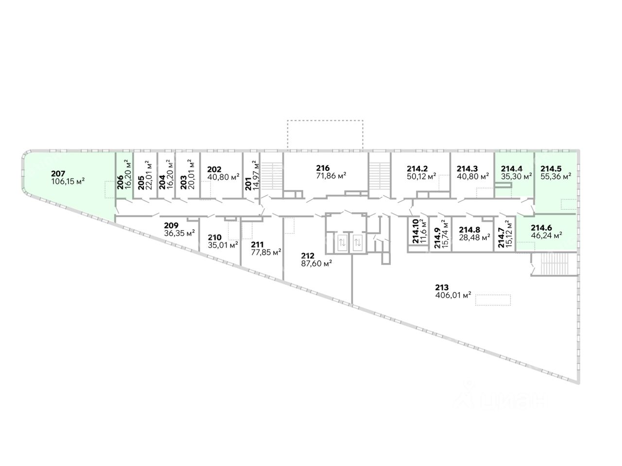 - Размер типового этажа: 1562;