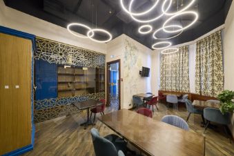 Помещение ресторан состоит из: Прихожая, магазин, зал ресторана с зоной баристы, кухня, рукомойная с двумя санузлами.