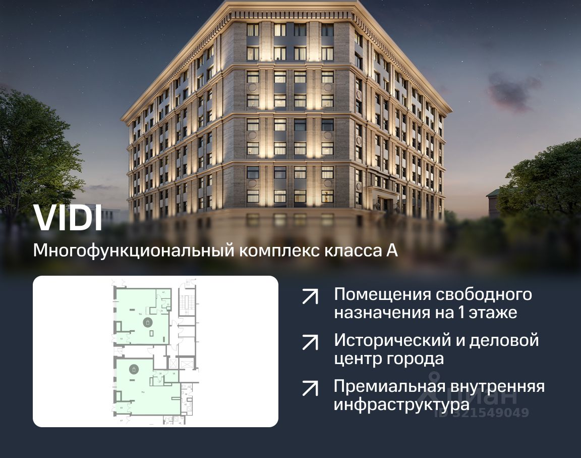 Предлагаются к продаже помещения свободного назначения площадью от 86,7 до 182,4 м² на первом этаже нового апарт-отеля VIDI (класс А).