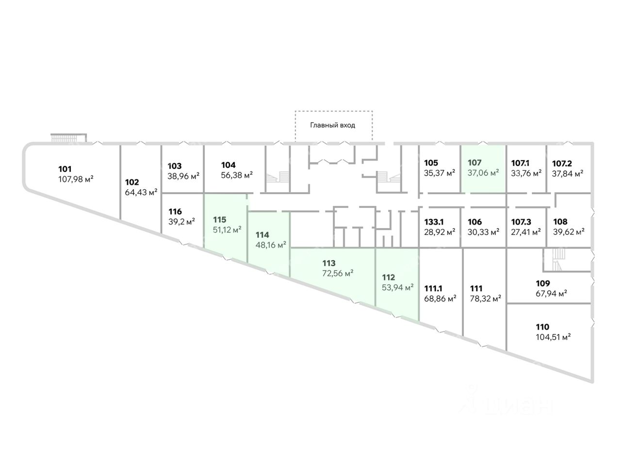 - Размер типового этажа: 1562;