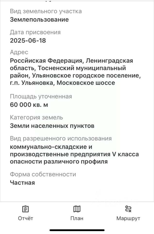 Земля Промназначения. возможно разделение. В собственности. УСН.