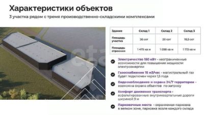Комплекс состоит из трех современных складских зданий: первое — 1069 м², второе — 1457 м² и третье — 1320 м². Каждое здание имеет несколько ворот, что позволяет организовать гибкую аренду как по частям, так и полностью. Вы можете легко адаптировать пространство под свои нужды, что делает этот объект особенно привлекательным для бизнеса.