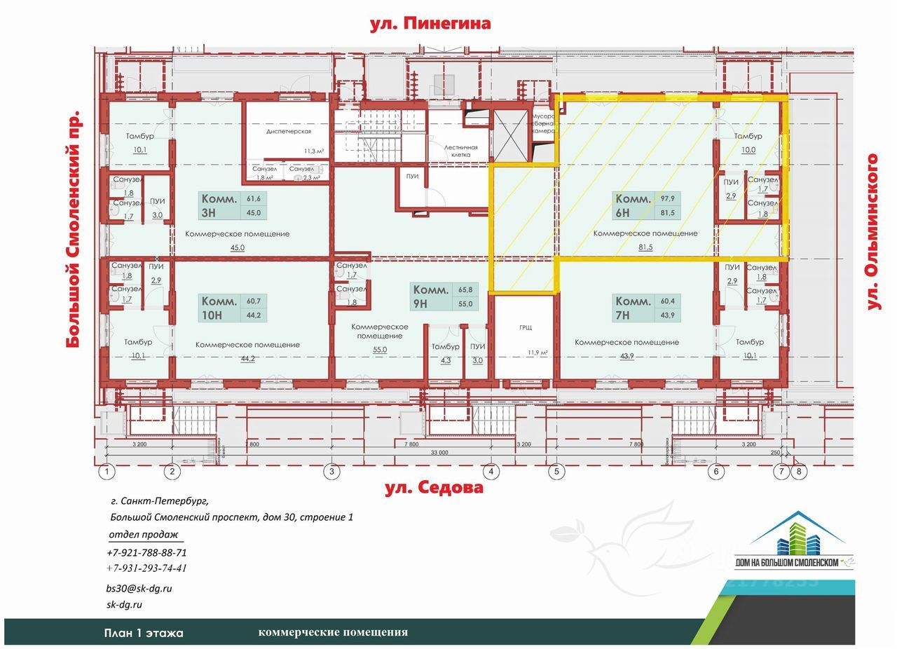 Продается коммерческое помещение свободного назначения 97,9 м2 на первом, коммерческом этаже нового жилого дома бизнес-класса в Невском районе Санкт-Петербурга. Без отделки. Высота потолков 4,9 м. 8,5квт с возможностью увеличения мощности. Отопление, вода, отдельный вход с подъемником для Мгн.