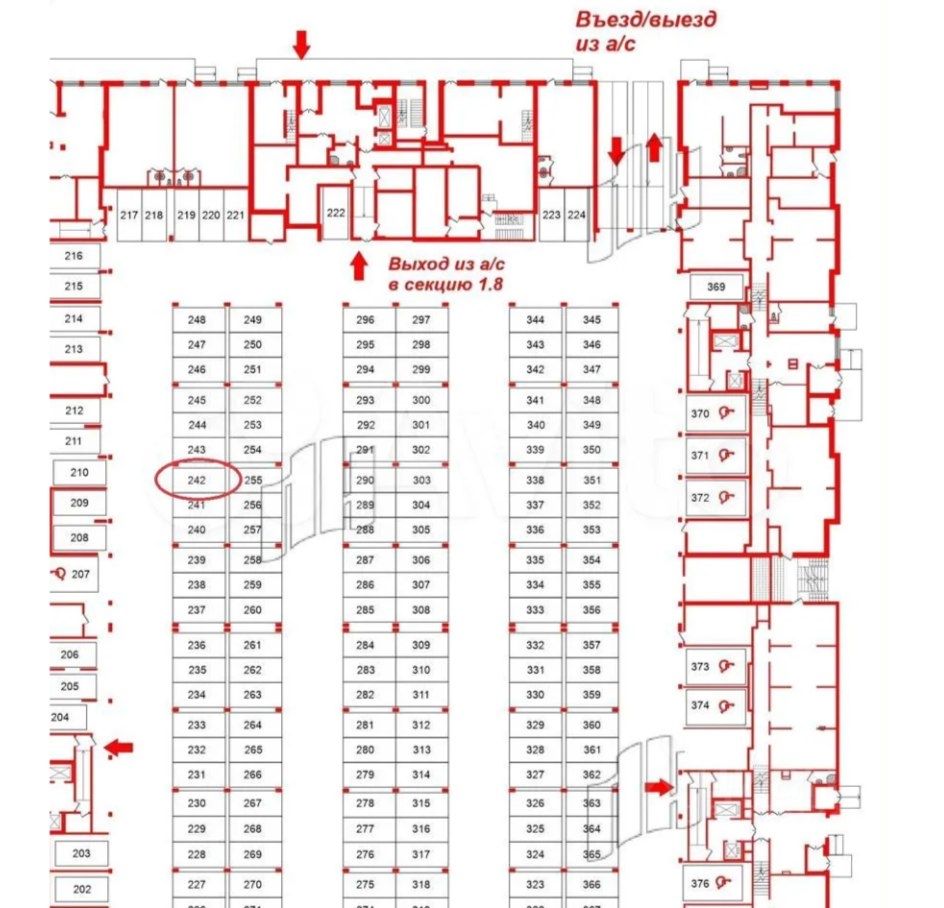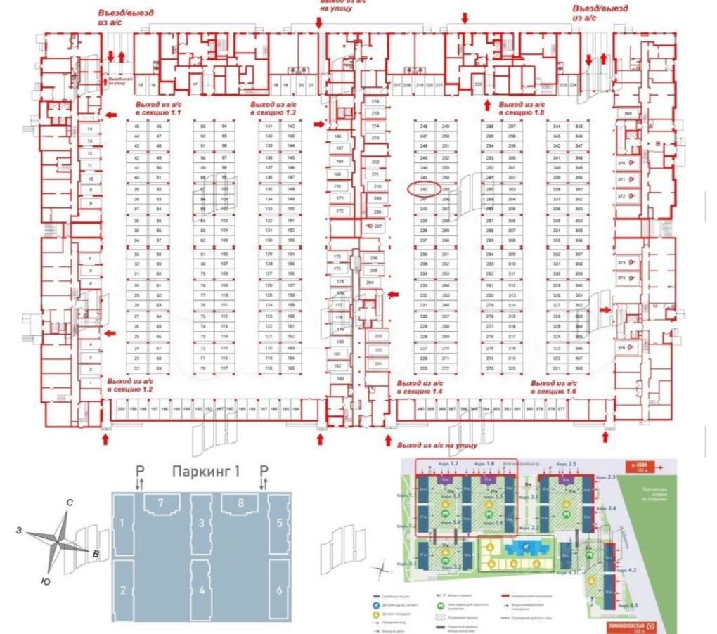 Удобное расположение. Близко к въезду и к входам в лифт (в семейную секцию 1.8 совсем рядом, фото 2). Сосед только с одной стороны.