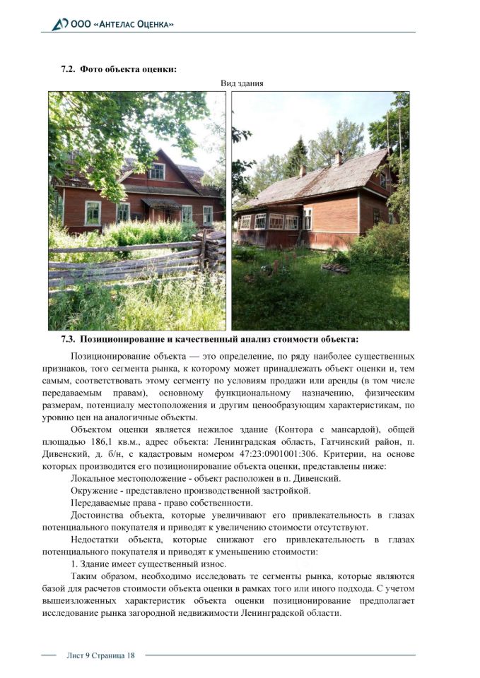 Нежилое здание общей площадью 186,1 кв.м., адрес объекта: Ленинградская область, Гатчинский район, п. Дивенский, д. б/н, с кадастровым номером 47:23:0901001:306.Имущество располагается на землях лесного фонда