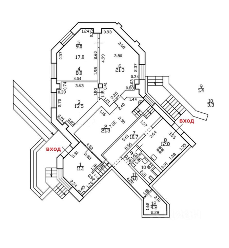 После завершения ремонта площадь помещения составляет 121,6 кв.м, но первоначальная площадь была 137,7 кв.м, что дает новому владельцу возможность при необходимости восстановить исходные размеры.