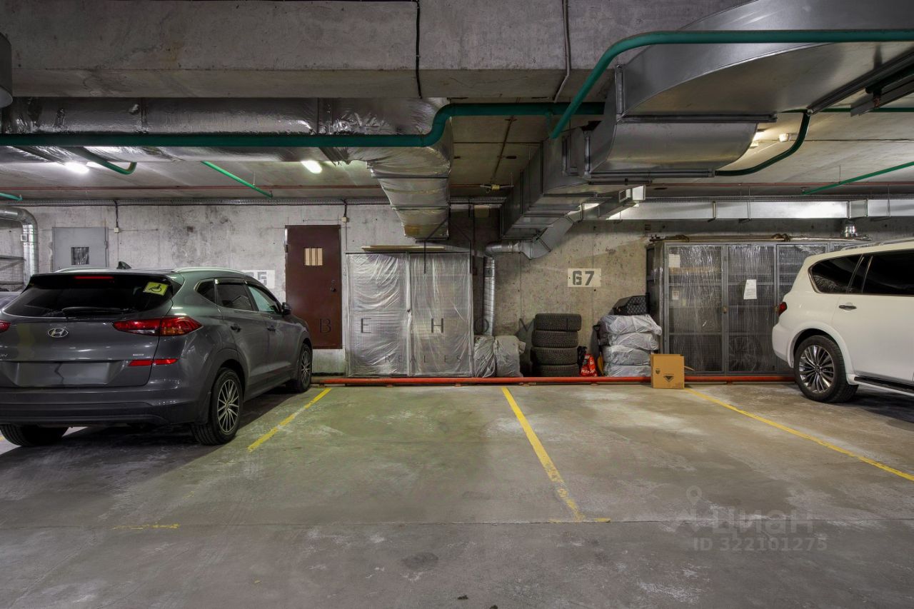 Паркинг находится на -1 этаже комплекса. Круглосуточная охрана, видеонаблюдение. Ворота с дистанционным управлением. Удобное расположение между недалеко от заезда/выезда. Выезд в карман улицы Кораблестроителей. При паркинге имеется СТО и шиномонтаж.