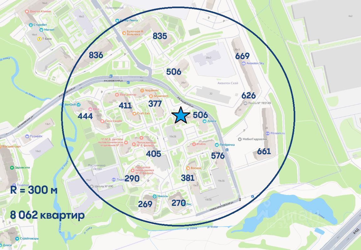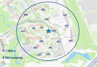 • В радиусе 300 метров от помещения 8 062 квартир (очень плотная застройка).