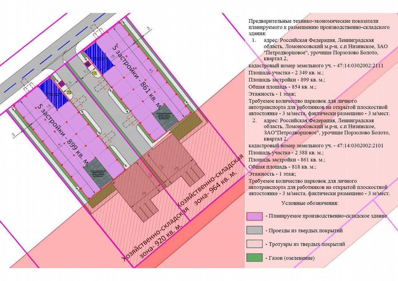 Уникальный заезд в промышленную зону с Гостилицкого шоссе, с полосой для торможения и полосой для разгона. Благодаря продуманному проекту заезда обеспечено расширение Гостилицкого шоссе, для удобного маневрирования крупногабаритной техники.