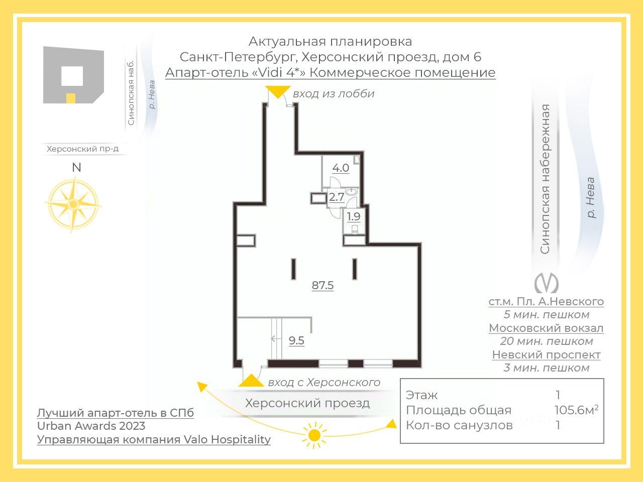 Арт. 117715365 Представляем вашему вниманию уникальное помещение свободного назначения общей площадью 105,6 кв.м в апарт-отеле Vidi в самом сердце Санкт-Петербурга!