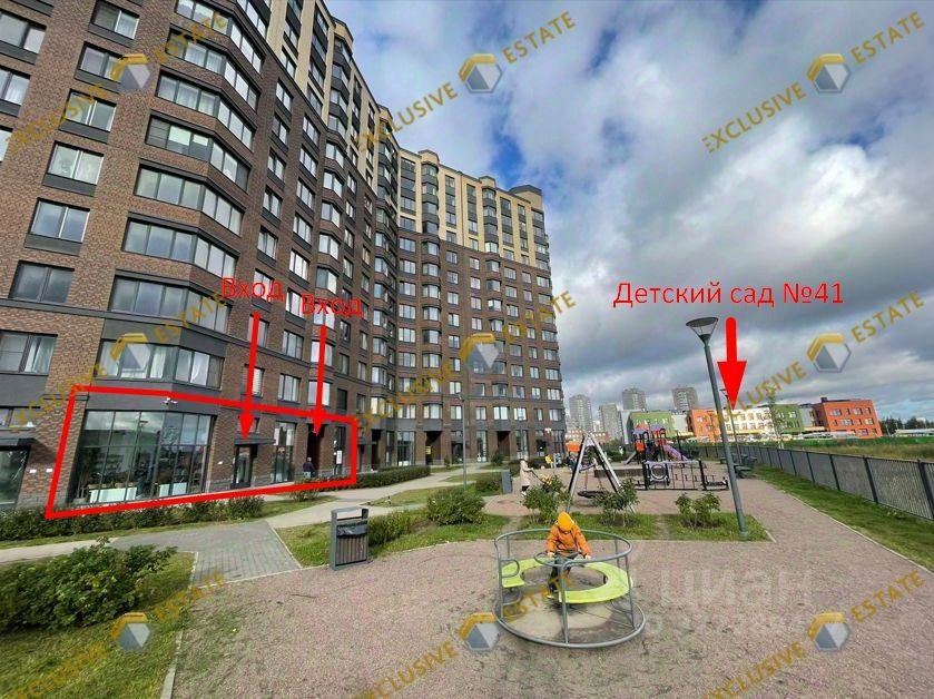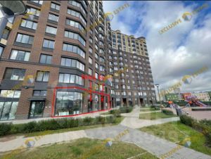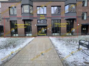 Расположение помещений самые удачные, находятся в хорошо просматриваемом месте, с высоким пешеходным и автомобильным трафиком - прямо справа от арки для прохода или проезда на внутреннюю территорию комплекса, а так же дорога в сторону детского сада и гипермаркета "Максидом"