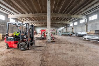 Удобный асфальтовый подъезд, въезд на территорию через проходную и дополнительно возможный выезд на уицу из ворот в торце здания. Площадь 1417м2 делится на 3 части, примерно на 50% здания находится помещение склада (цеха), и остальные 2 бокса площадью по 25% от общей.