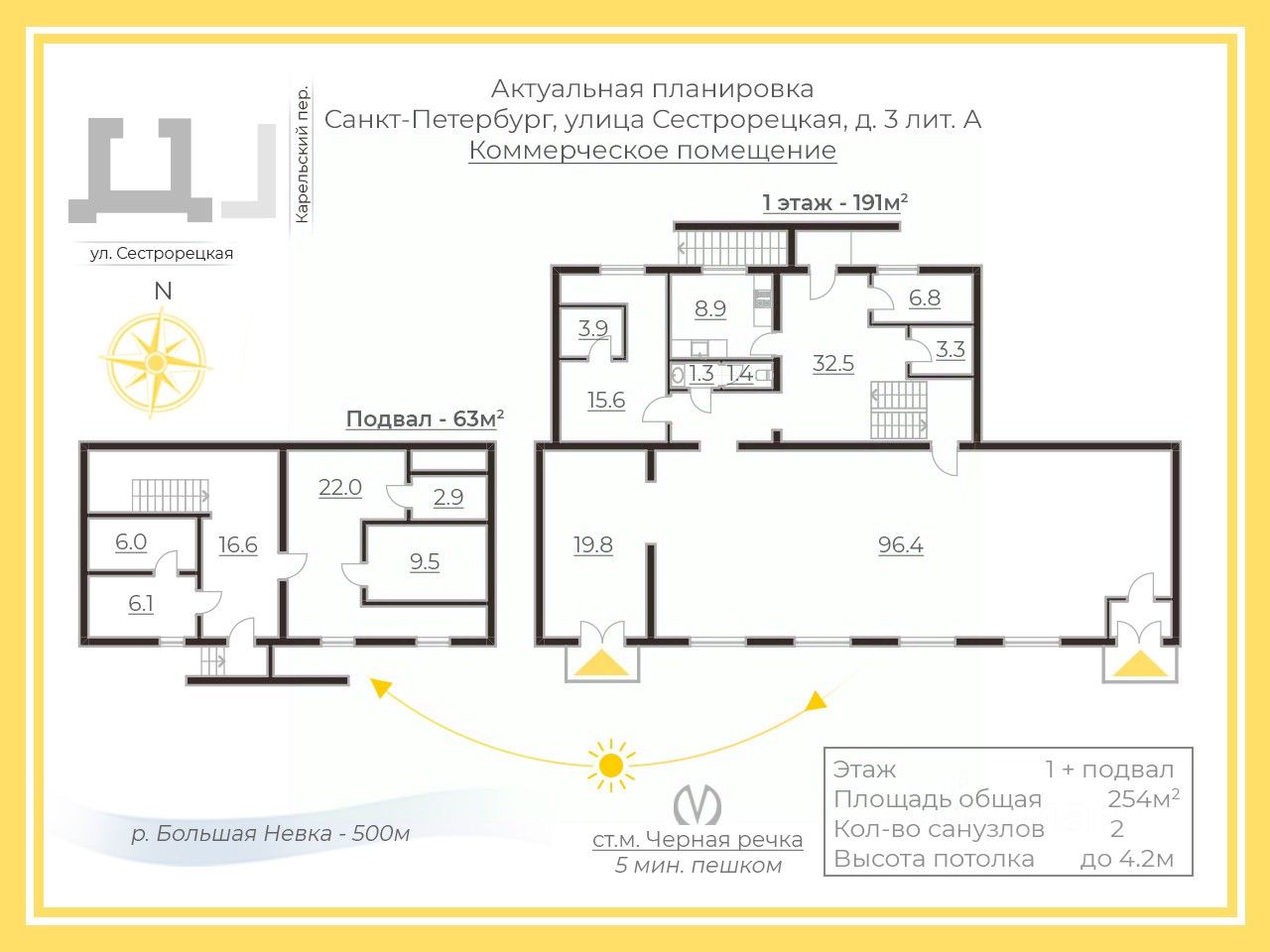 Арт. 118724500 Продаётся просторное универсальное коммерческое помещение с четырьмя отдельными входами, всего в 7 минутах ходьбы от метро "Чёрная Речка".