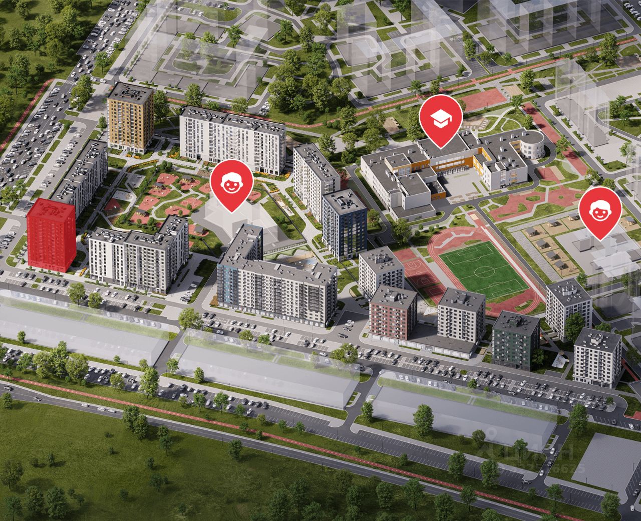 Жизнь в нашем городе будет удобной благодаря местным школам и детским садам, уютным пекарням и семейным кофейням, полезным магазинам и аптекам, которые находятся в шаговой доступности.