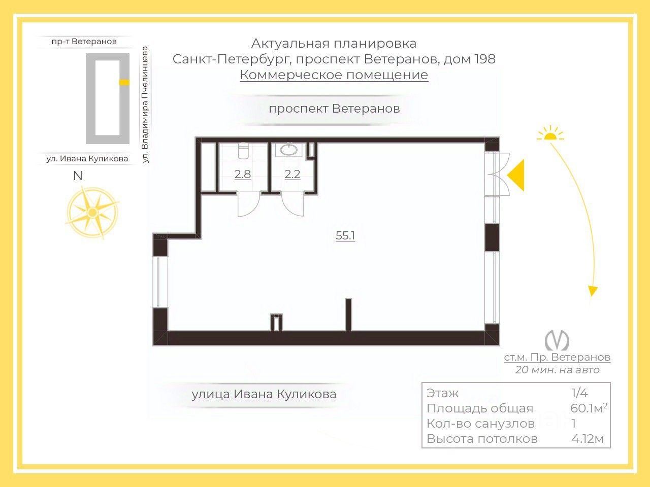 Арт. 118905403 Продаем коммерческое помещение площадью 62 кв. м правильной прямоугольной формы с витринными окнами, выходящими на проезжую часть.