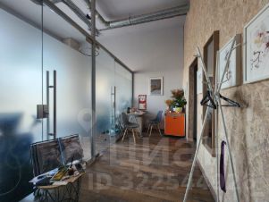 Возведена стеклянная перегородка, которая лежит помещение на 2 зоны: входную группу и рабочее пространство.
