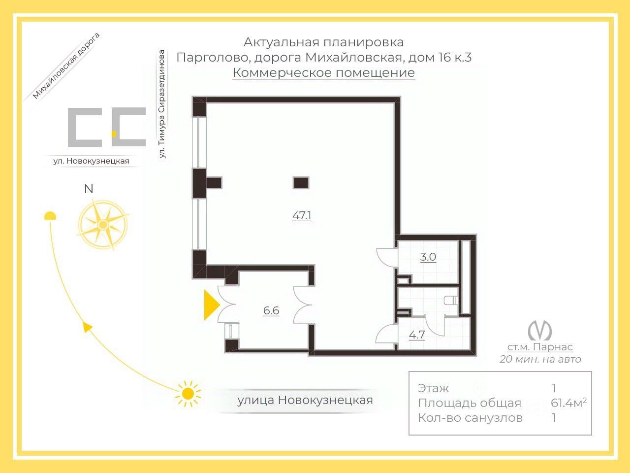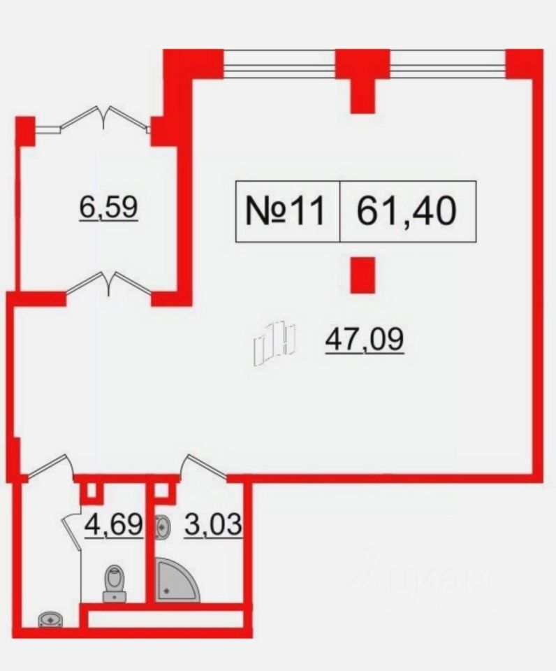 Арт. 118911686 Продаем коммерческое помещение площадью 61 кв. м свободной планировки с витринными окнами, выходящими на улицу.