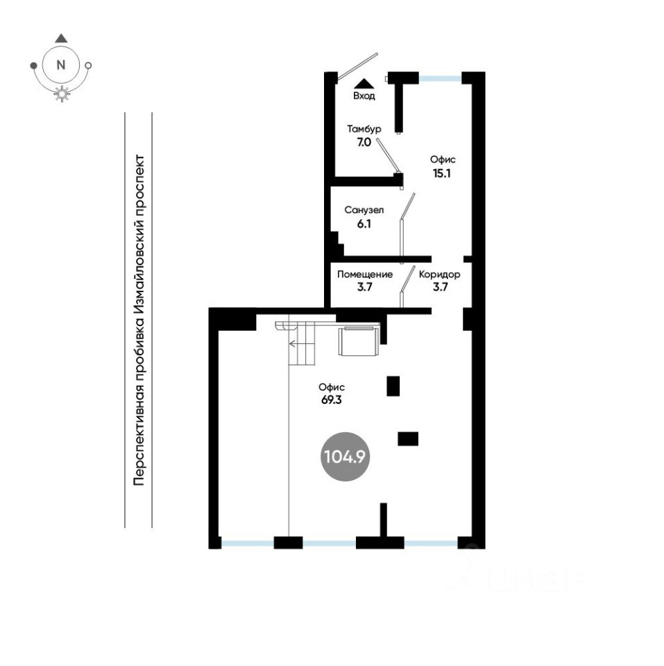 Продается помещение свободного назначения 6, по адресу Измайловский бульвар, дом 4, корпус 1, строение 1, корпус ЖК Галактика Pro, корпус 4.13 - встроенные помещения в Галактика Pro на 1 этаже, с площадью 104.9 м2.
