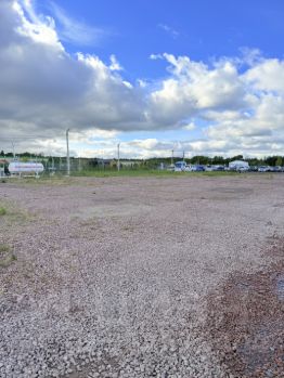 Территория ограждена забором, удобный съезд с асфальтированной дороги