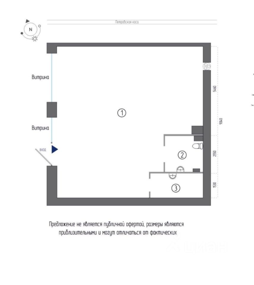 Первое от входа в ЖК. Расположено на пешеходном променаде. Отдельно стоящее помещение , примыкает к общему фонду только одной стеной.