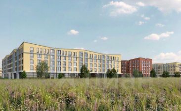 Малоэтажный квартал, состоящий из жилых домов высотой 5 этажей. Фасады выполнены в теплых оттенках бежевого и терракотового спектра. Парапеты домов имеют уклоны, фасады украшают декоративные пояса, а под окнами располагается рустовка.