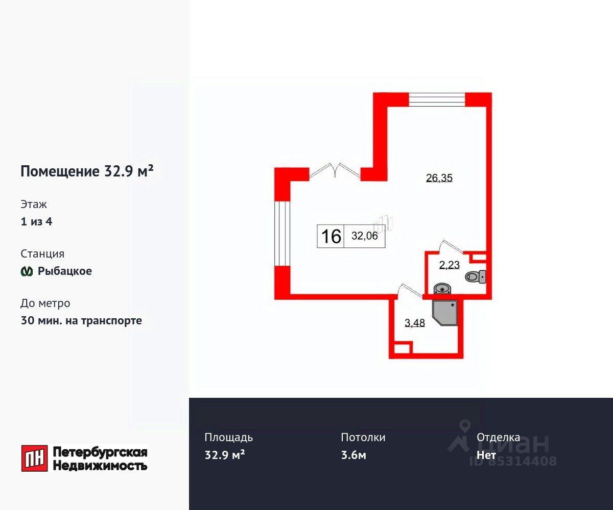 Продается помещение в ЖК Univer City площадью 32.9 м2. Помещение расположено рядом с метро Купчино. Расстояние до метро 30 Мин.на транспорте. Корпус сдан. Высота потолка 3.6 м. Без отделки.
