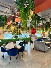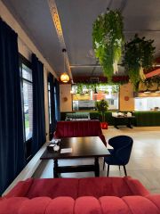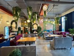 Основной зал: 42 стола, включая уникальный стол-река и зону с кабинками (6 шт.).