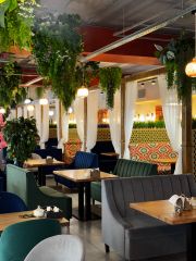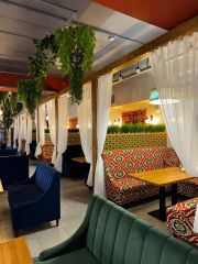 Аутентичный восточный дизайн: продуман каждая деталь для полного погружения. Элементы ручной работы (эркеры, топчаны из Узбекистана), турецкие люстры, столы из дуба.