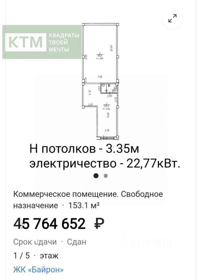 В комплексе, более 5-ти тыс. квартир и более 15 тыс. проживающих в нём жильцов. Комплекс полностью заселён с 2021г. Помещение без отделки, все коммуникации присутствуют, 23.квт. электричества, отдельный вход в помещение., высота потолков - 3,35 м.,прилегающая наземная парковка, витринные окна.