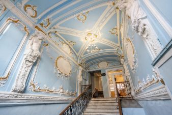 Бережно и с любовью, с помощью реставраторов из Эрмитажа, восстановили убранство парадной, лепнину.