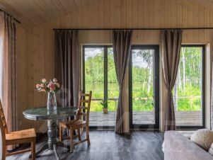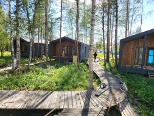 Озеро находится в кольце участков (частной собственности), поэтому на берегу озера нет толпы отдыхающих из ближайших СНТ. К глэмпингу подходит охраняемая асфальтированная частная дорога.