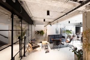 Описание помещения: Офис с панорамными окнами и выходом на крышу.