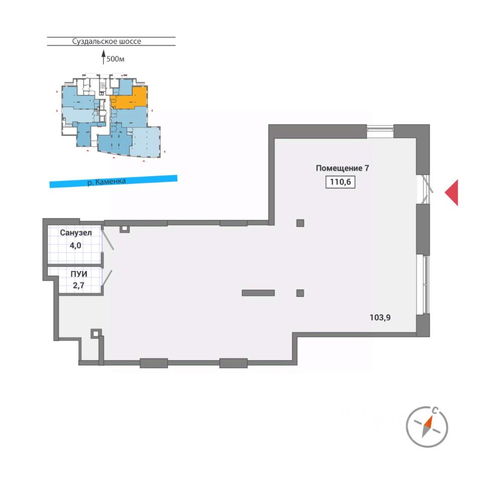 Описание помещения: Помещение имеет 2 входа.