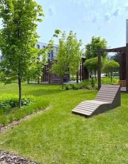 На территории комплекса расположены детские площадки и зоны отдыха. Прогулочные дорожки в окружении зелени, идеально подходят для вечернего променада и встречи красивых закатов. Есть возможность брать в аренду велосипеды и с удовольствием кататься по дорожкам комплекса или в окрестностях.
