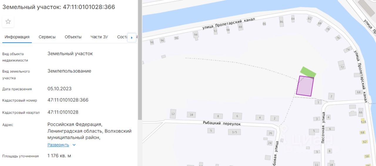 Земельный участок, площадью 1176 кв.м. с кадастровым номером 47:11:0101028:366, расположенный по адресу: Ленинградская область, Волховский район, г. Новая Ладога, пер. Рыбацкий, с разрешенным использованием для индивидуального жилищного строительства.
