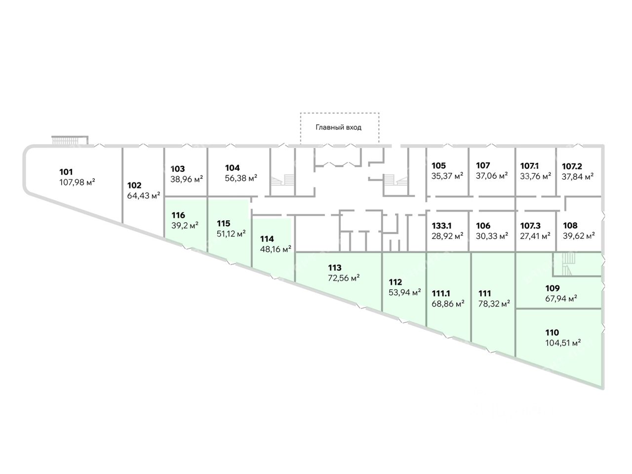 - Размер типового этажа: 1562;