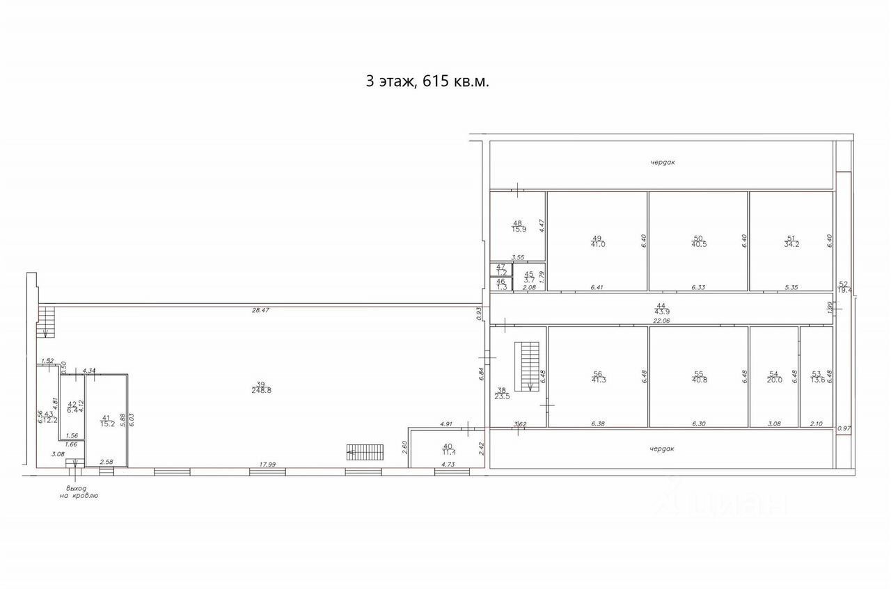 Высота потолков 4,2 м. Много больших окон по периметру.