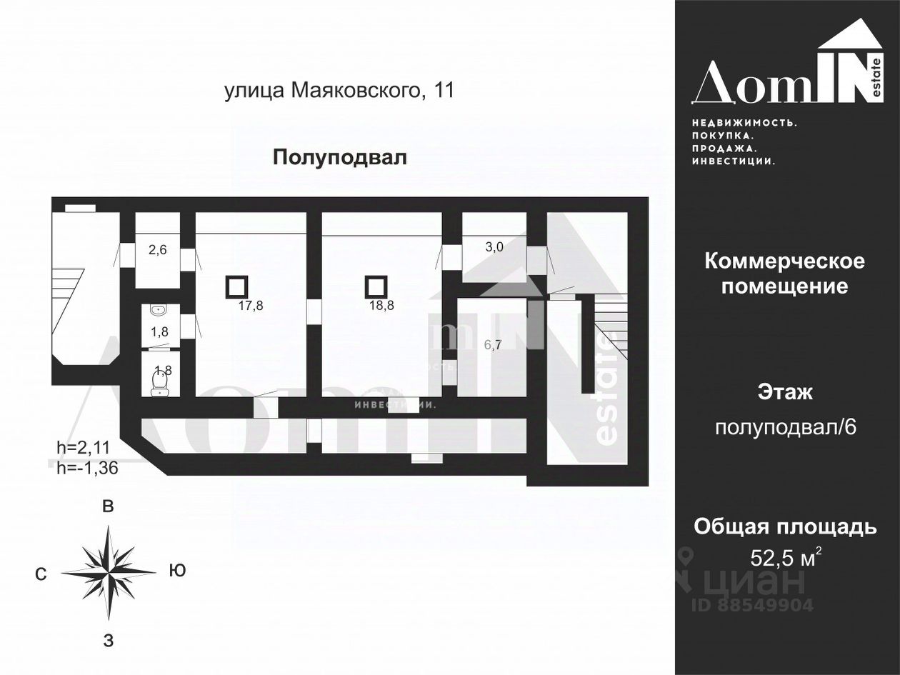Арт. 120569995 Продаётся нежилое помещение в историческом центре Санкт-Петербурга, площадью 52,5 кв.м.