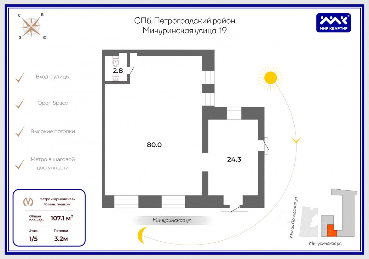 Арт. 119473961 Просторное коммерческое помещение 107 кв.м в историческом центре Санкт-Петербурга! В пешей доступности основные достопримечательности: Петропавловская крепость, Набережная Петровская и Крейсер Аврора, Александровский парк, Троицкий мост ведущий к Марсову полю и всему парадному Петербургу!