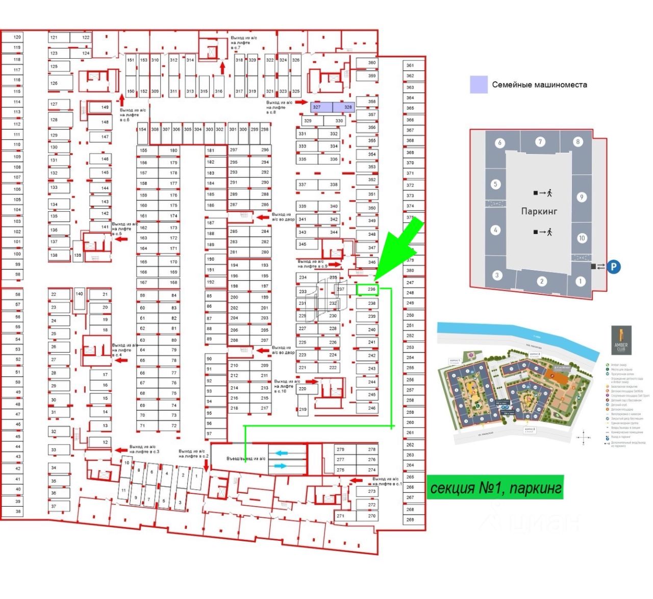 Место паркинга 236 выделено на плане зеленым.