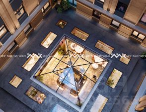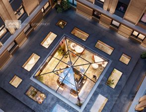 Лобби и общественные зоны спроектированы лондонским бюро Identity Design: уютные лаунжи, места для встреч и работы. На первых двух этажах — помещения для бизнеса: ретейл-форматы, сфера услуг, офисные блоки.