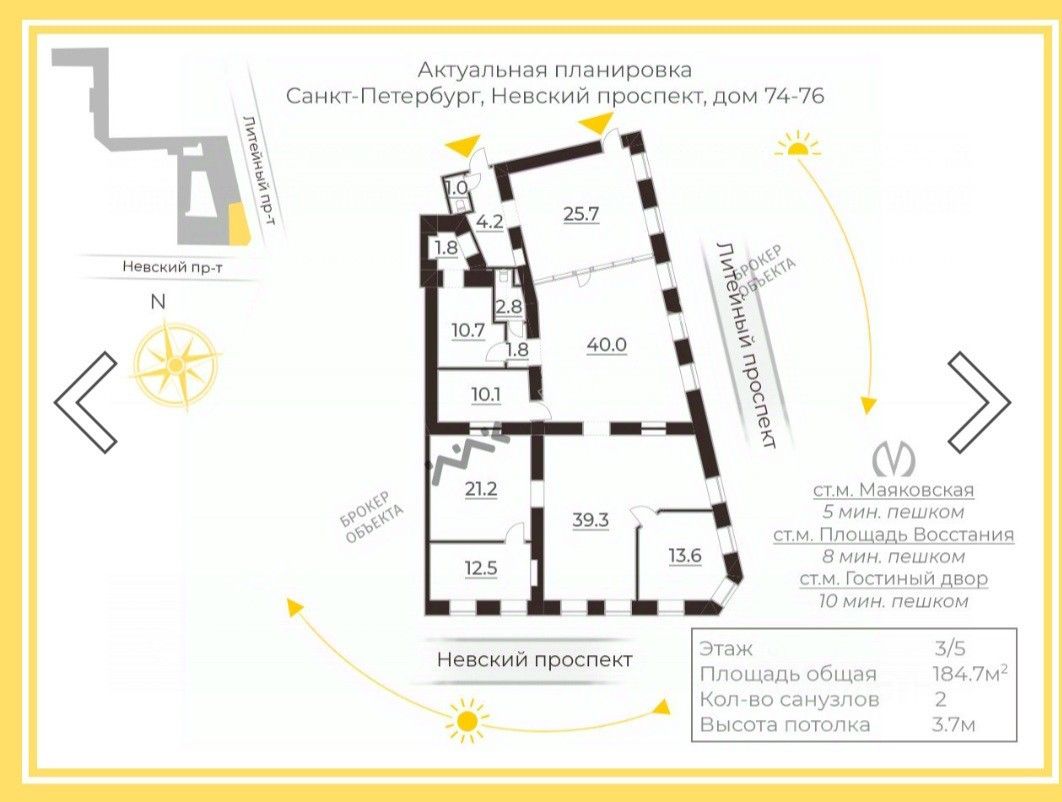 Помещение очень светлое, в нем 11 окон, которые выходят на Невский проспект и на Литейный пр-т.