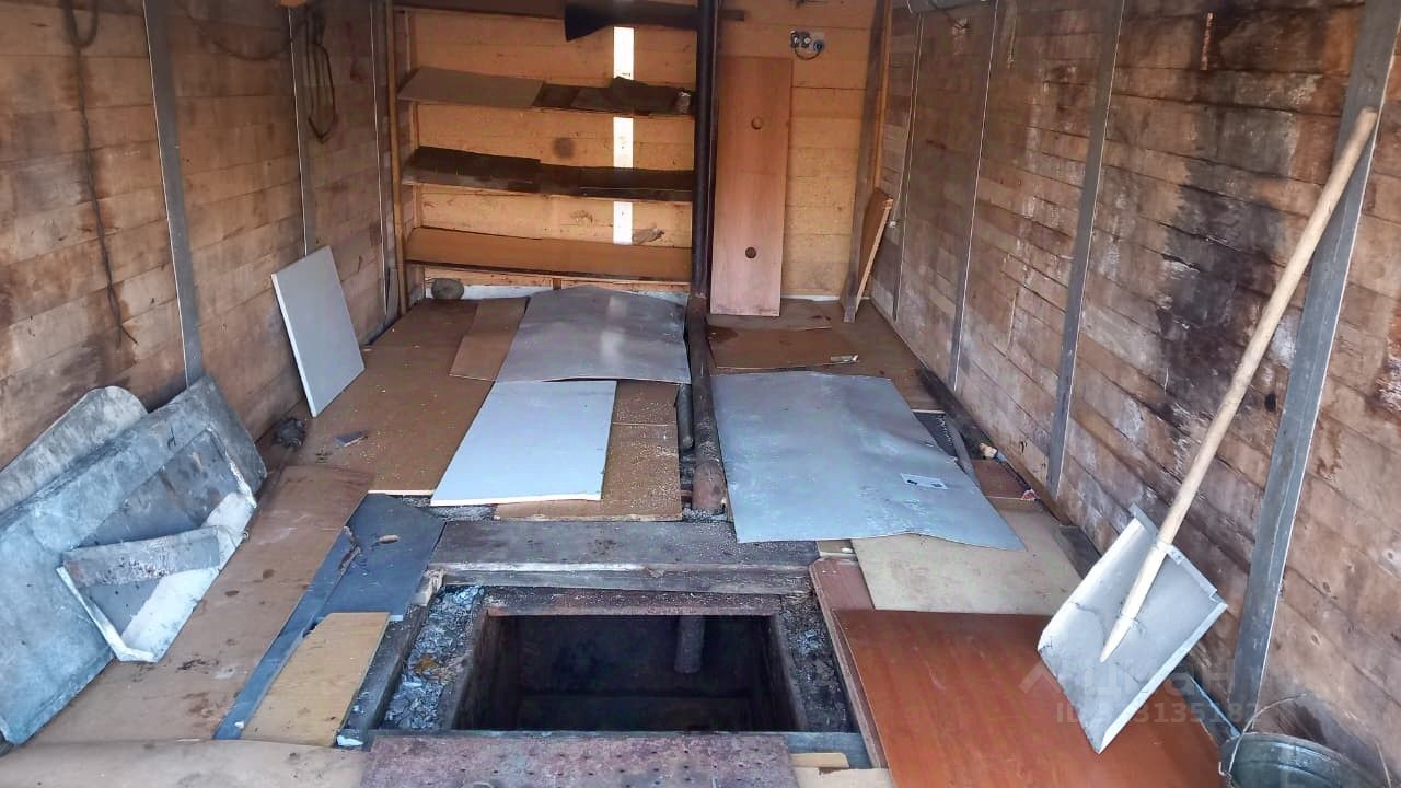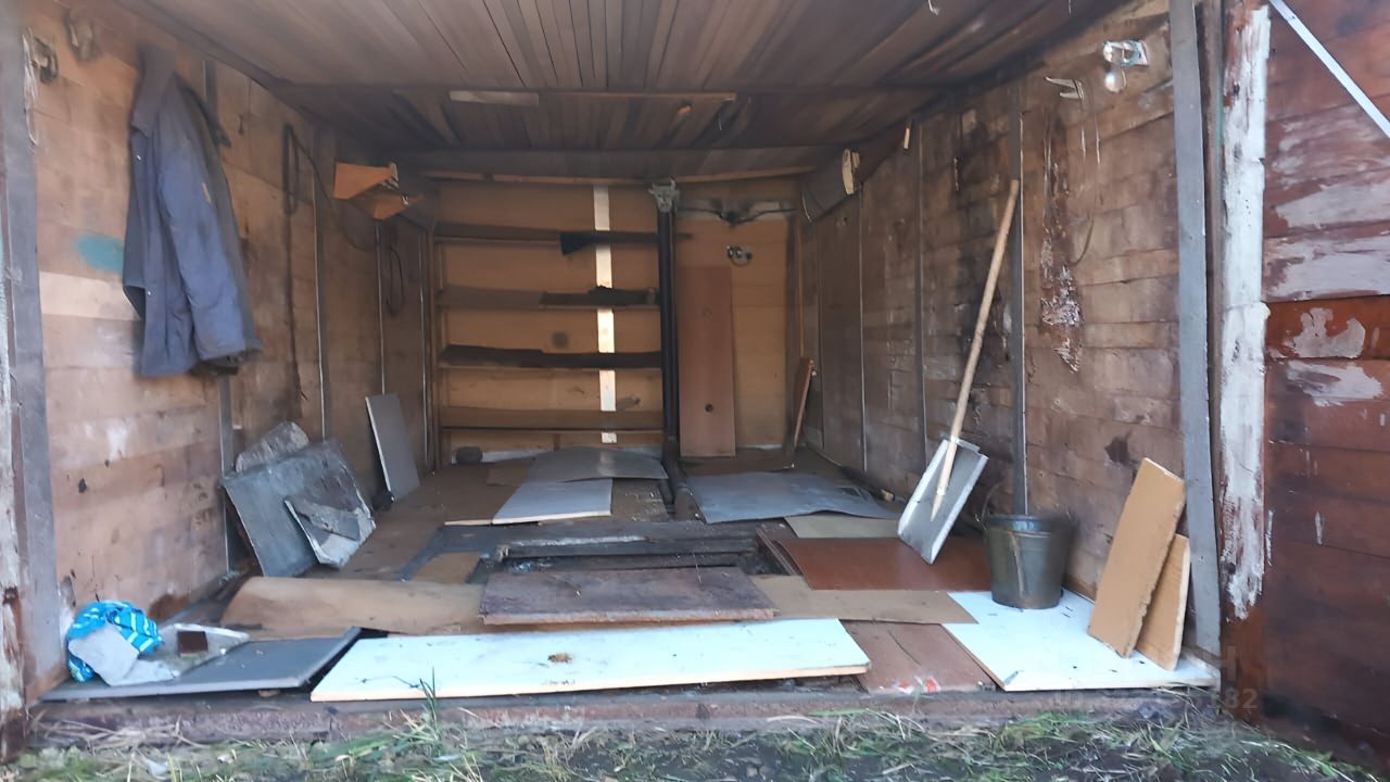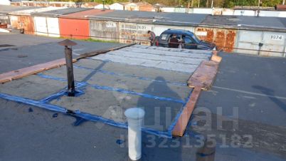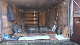 Пол бетонный. Крыша недавно перекрыта. Полки, розетки.