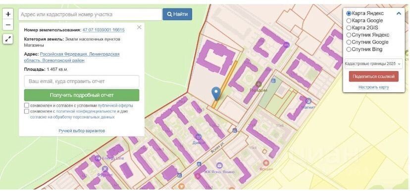 Кадастровый номер-47:07:1039001:16615. Продаётся полностью в одни руки.