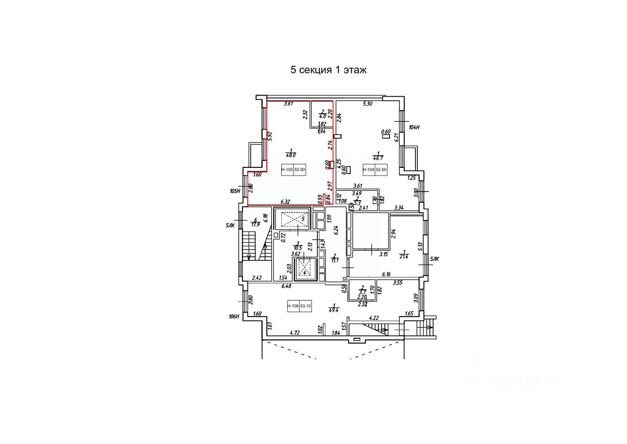 • Общая площадь52 м²