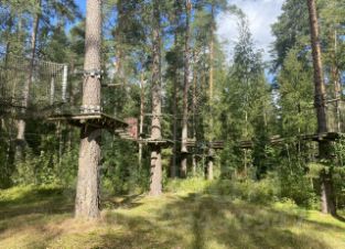 На участке расположены: коттеджи для сдачи в аренду, беседки на берегу озера, веревочный парк, спортивные площадки, прогулочные дорожки, кафе, две бани с пирсами. Есть возможность организовать платную рыбалку.