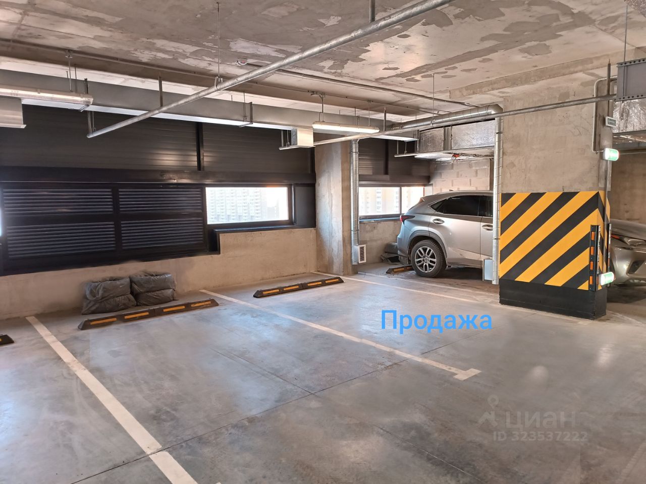 Место удачно расположено у въезда в паркинг и недалеко от лифта, у колонны. Имеется место для хранения резины/велосипедов.
