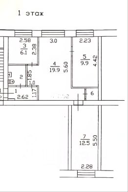Общая площадь 55.5 м2, кабинеты: 19,9+9.9+12.5+6.1кв.м.