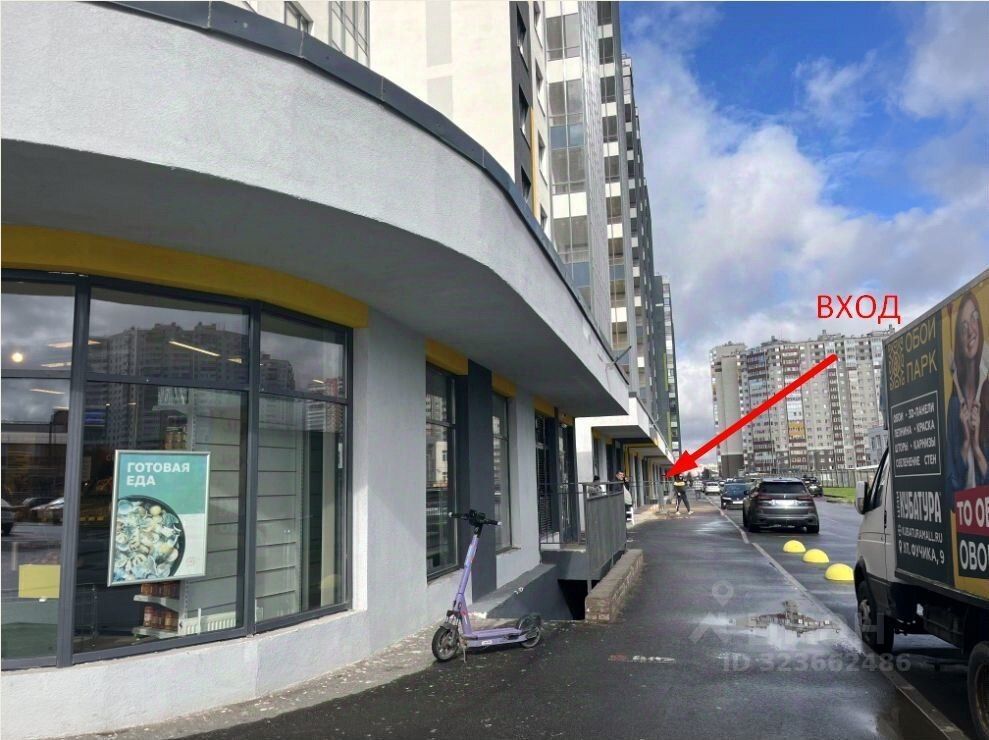 Фасад. Витрина/Вход. Первая линия. Хорошая проходимость. Парковка у входа. Вытяжка. Мощность до 10кВт, можно увеличить.С НДС от юр. лица. Справа от входа пункт выдачи OZON. Возможен зачёт имеющейся недвижимости.